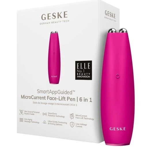 GESKE 000013 MicroCurrent & MicroDermabrasion Face-Lift Pen | 6 in 1 (Magenta)