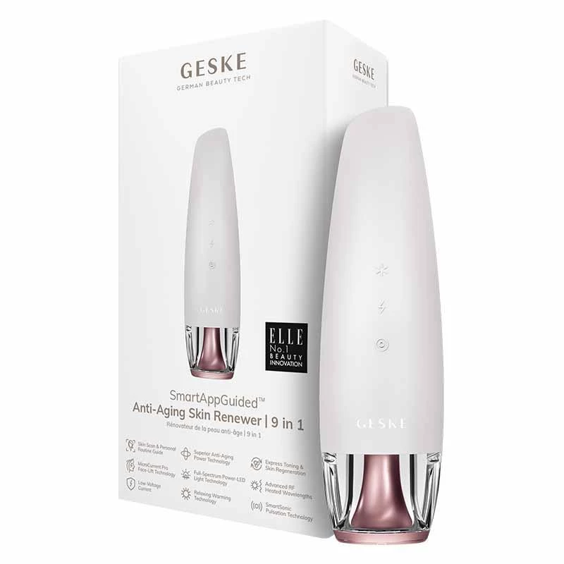 Experience stunning skin renewal with the SmartAppGuided Anti-Aging Skin Renewer | 9 in 1 from GESKE! The groundbreaking device reduces signs of aging such as wrinkles, hyperpigmentation and sagging skin using advanced technologies.