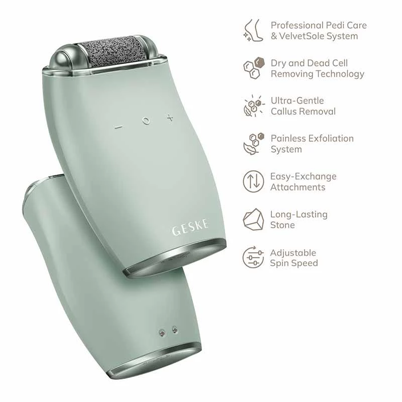 Unveil smooth, beautiful feet with the SmartAppGuided Electric Pumice Foot Smoothing Roller | 7 in 1 from GESKE. The device features an easily exchangeable pumice stone attachment that is designed to provide professional-grade exfoliation and softening. With such ease of use, the Electric Pumice Foot Smoothing Roller | 7 in 1 is your ticket to effortless foot care.
