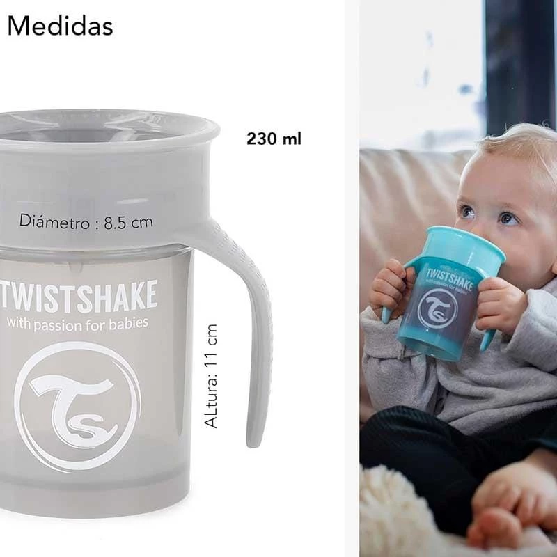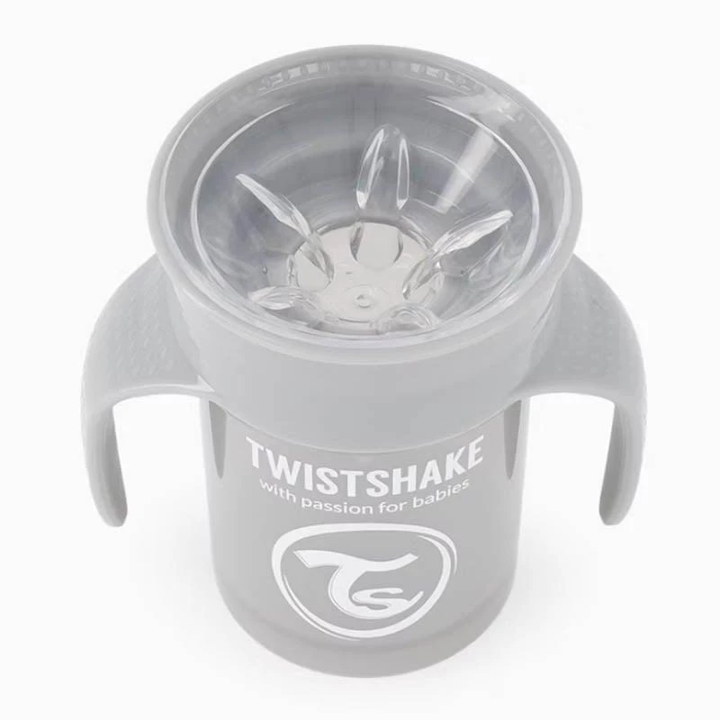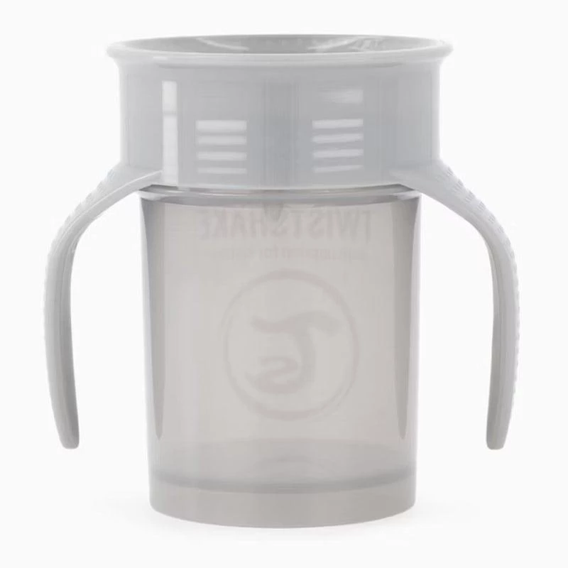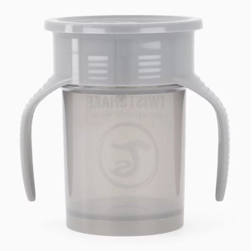 Twistshake's innovative Spill-free 360 Cup makes it easier for your child to drink independently. The 360-edge allows drinking from all around, just like a regular drinking glass. It is also spill-proof and has two easy-to-grip handles. The cup holds 230 ml and is suitable for children from 6 months old.\n\n- Smart Design: Drink from any angle with 360-degree edge\n- Perfect Grip: Dual handles for easy and ergonomic grip\n- Development: Perfect for learning independent drinking\n- Safe Design: Spill-proof technology prevents messes\n- Safe Materials: BPA-free and dishwasher safe
