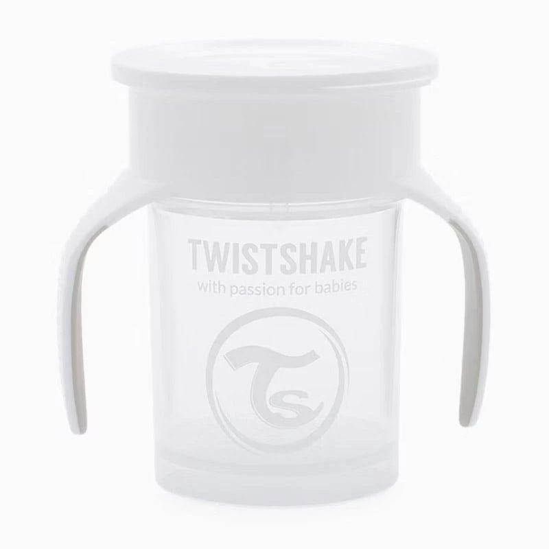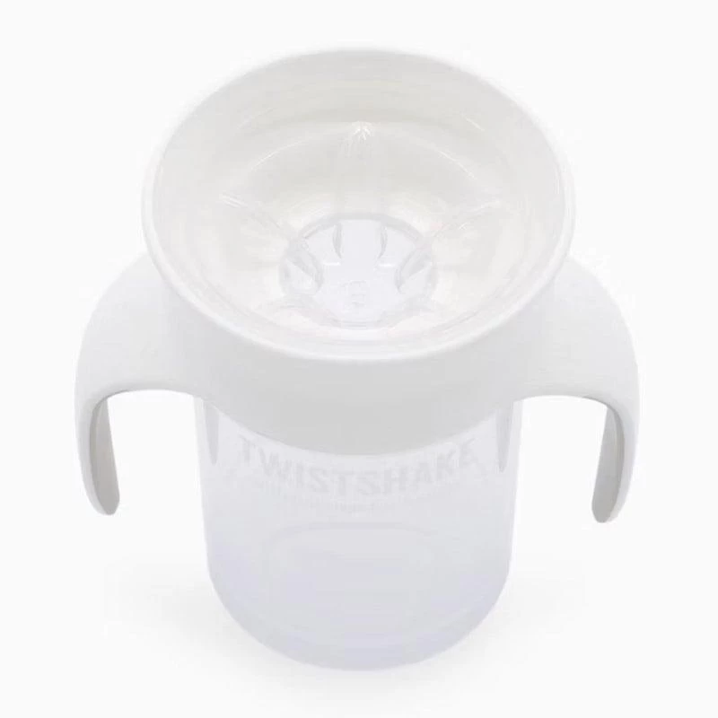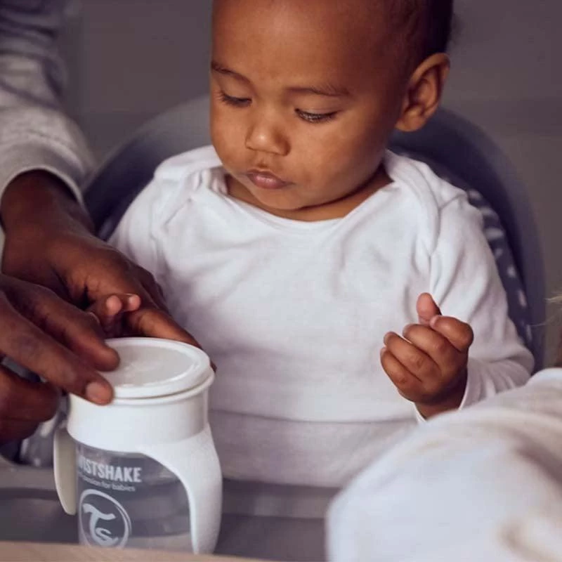 Twistshake's innovative Spill-free 360 Cup makes it easier for your child to drink independently. The 360-edge allows drinking from all around, just like a regular drinking glass. It is also spill-proof and has two easy-to-grip handles. The cup holds 230 ml and is suitable for children from 6 months old.\n\n- Smart Design: Drink from any angle with 360-degree edge\n- Perfect Grip: Dual handles for easy and ergonomic grip\n- Development: Perfect for learning independent drinking\n- Safe Design: Spill-proof technology prevents messes\n- Safe Materials: BPA-free and dishwasher safe