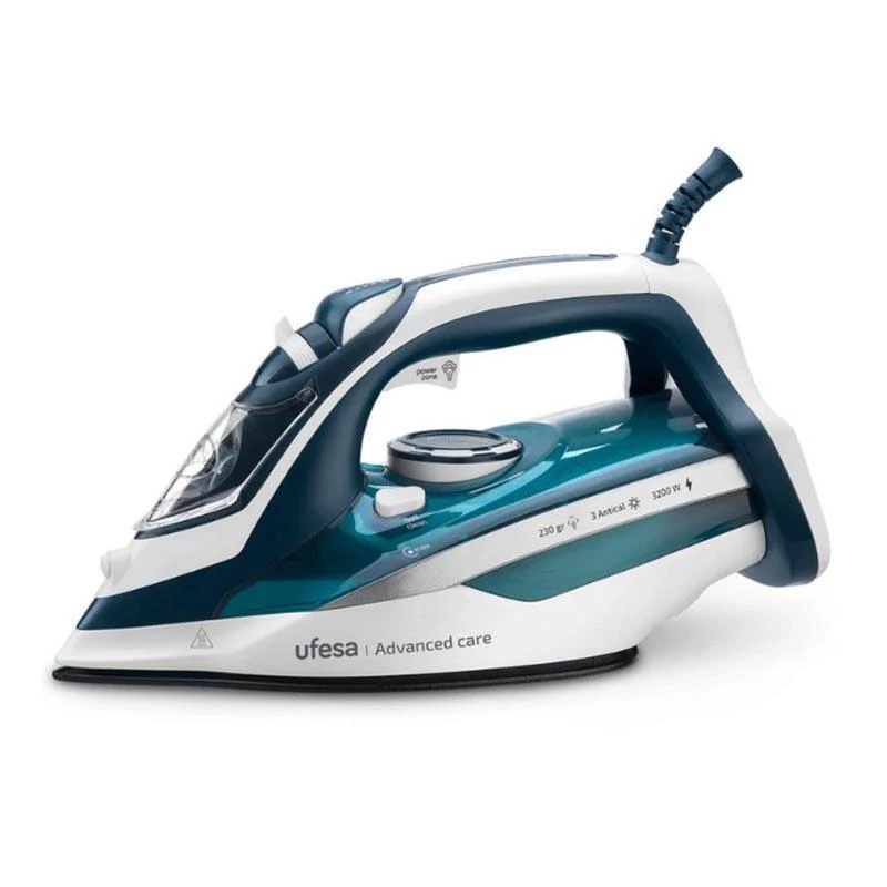 Steam Iron 3200 W Variable steam dosage 3-in-1 anti-scale system (1-Selfclean system, 2- Anticalc shot, 3-Anticalc cartridge) Tank capacity: 450ml Anti-drip system Vertical ironing Steam or dry ironing Spray function Ceramic Advanced Glide soleplate Soleplate size 24x12.8cm 1,9m length power cord