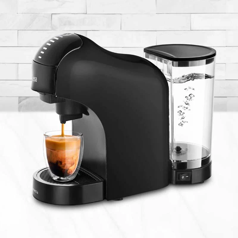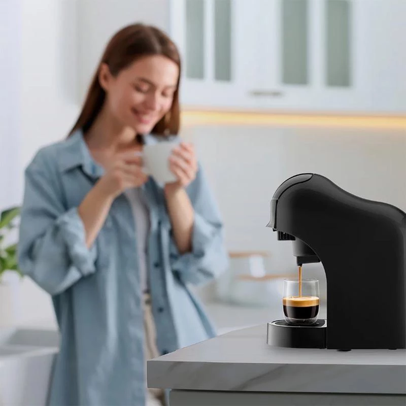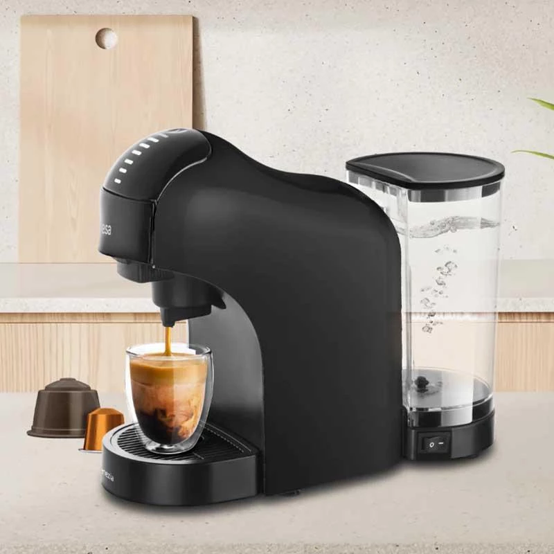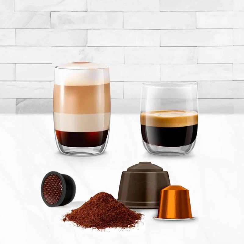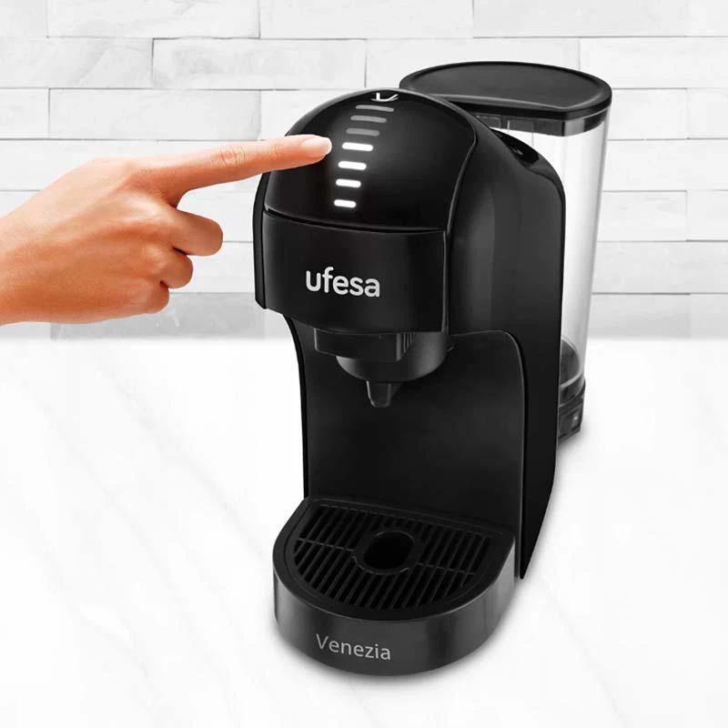 Coffee maker 1400W Touch control panel with 7 levels? Removable 1L water tank Compatible with Nespresso, Dolce Gusto capsules, ground coffee and Delta coffe?e Automatic shut-off Compact design? 15 Bar pressure pump?